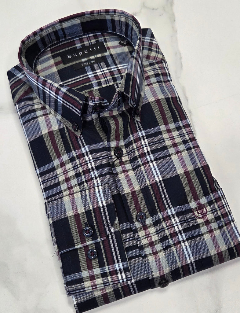 BUGATTI L/S SHIRT - BLUE/BEIGE/NAVY