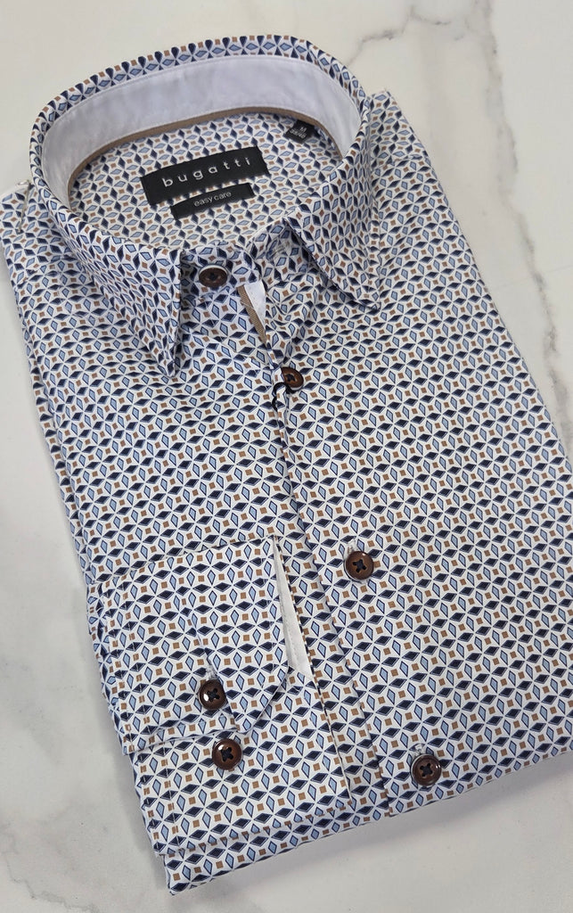 BUGATTI PATTERN L/S SHIRT (88509D/320) - BLUE/BEIGE