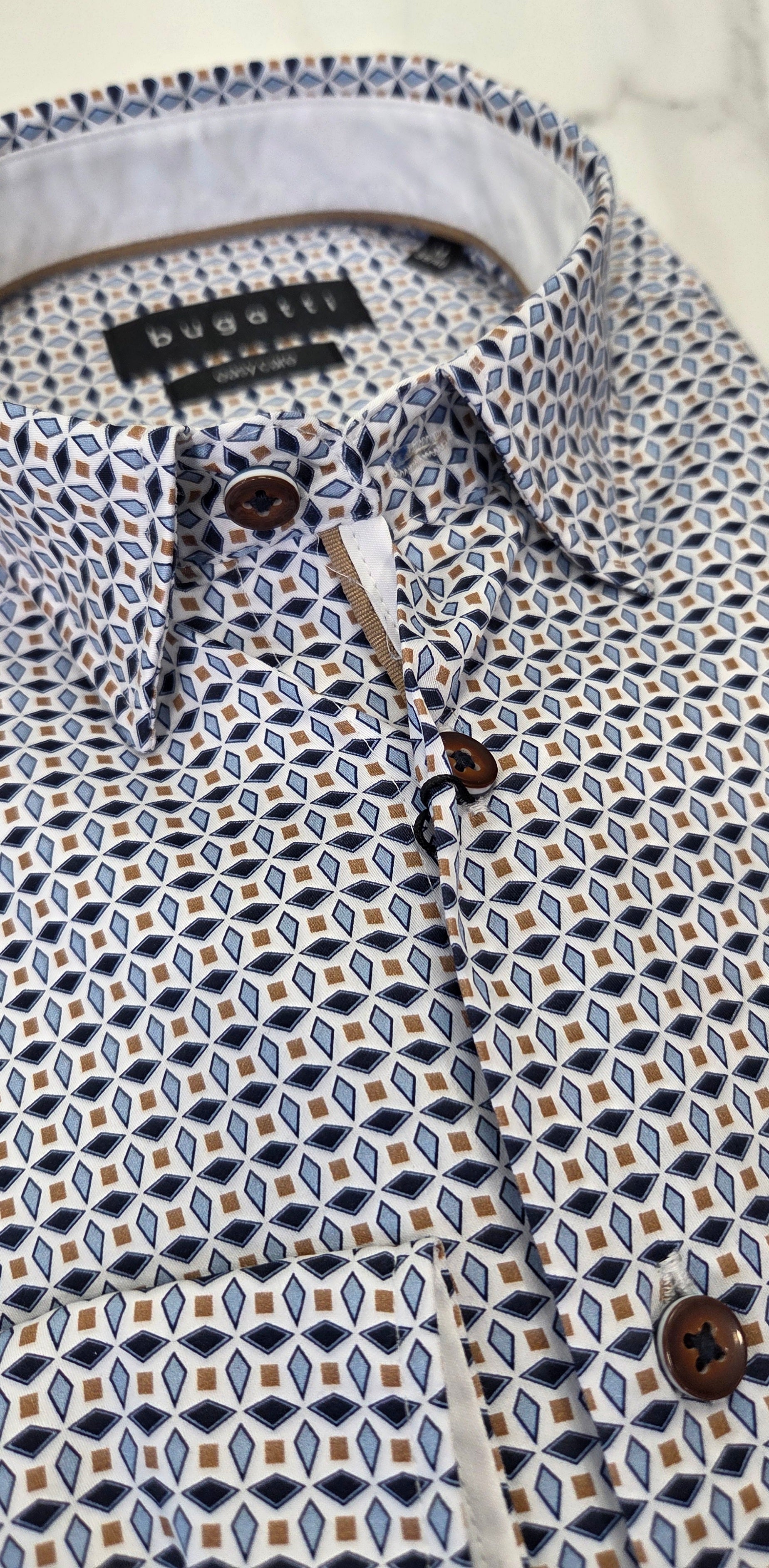 Discover the bugatti shirt – a classic with a modern twist! Made from 100% cotton, this shirt features an elegant button-down collar and all over pattern . With its slim-fitting design you'll always be in style, even on the go. The square 2-button cuffs and bugatti flag label act as additional accents.