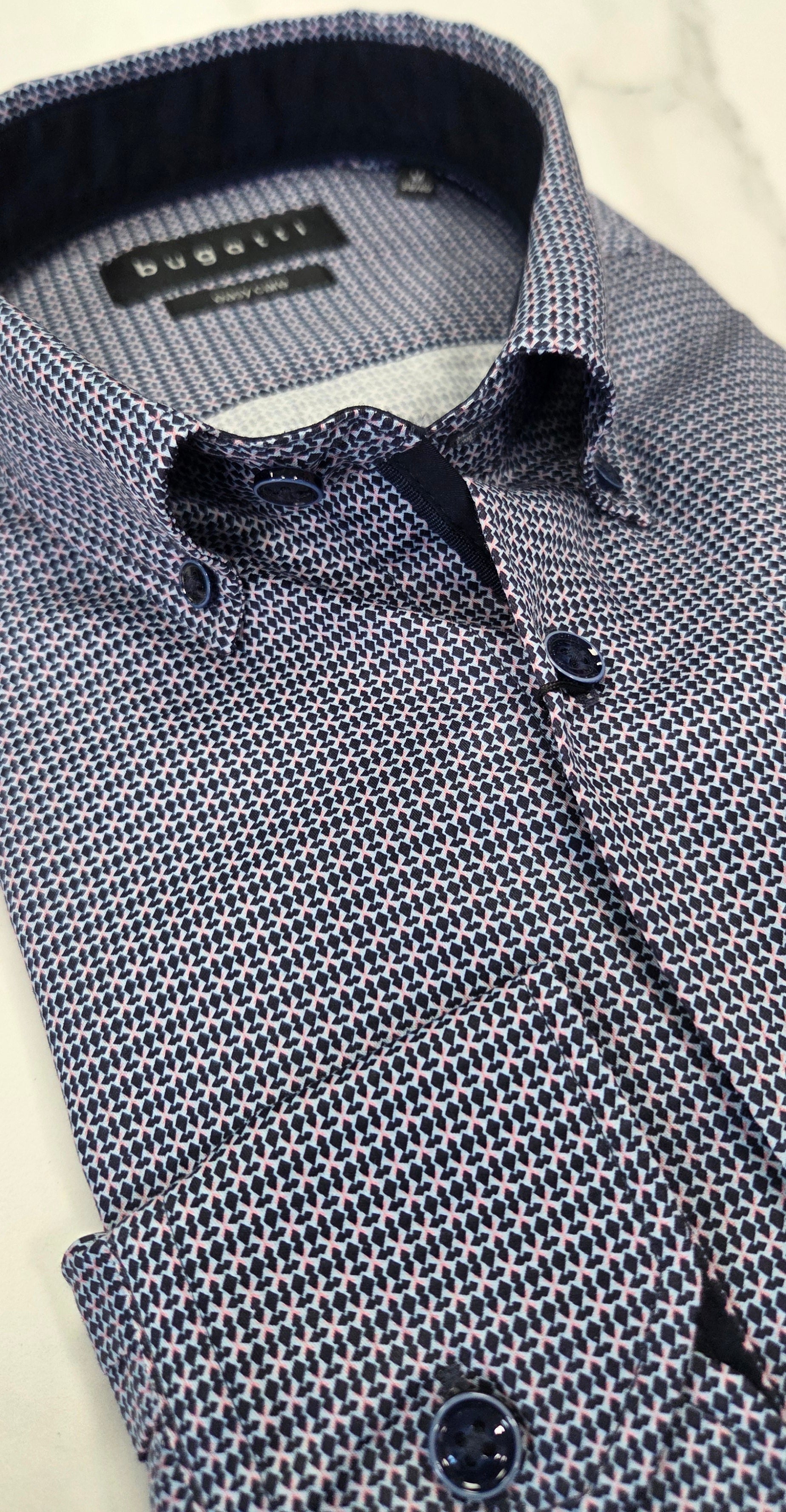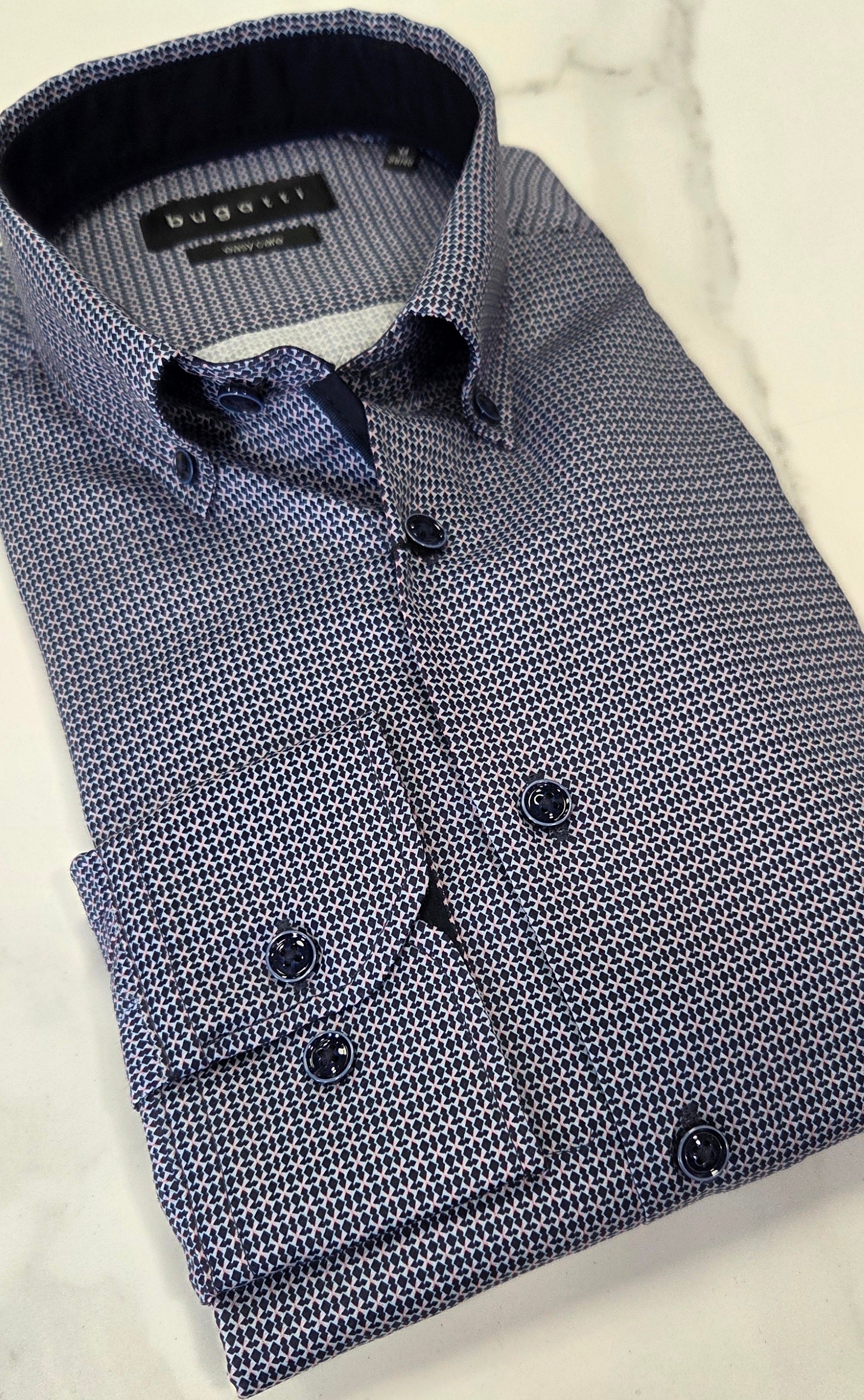 BUGATTI PATTERN L/S SHIRT - NAVY