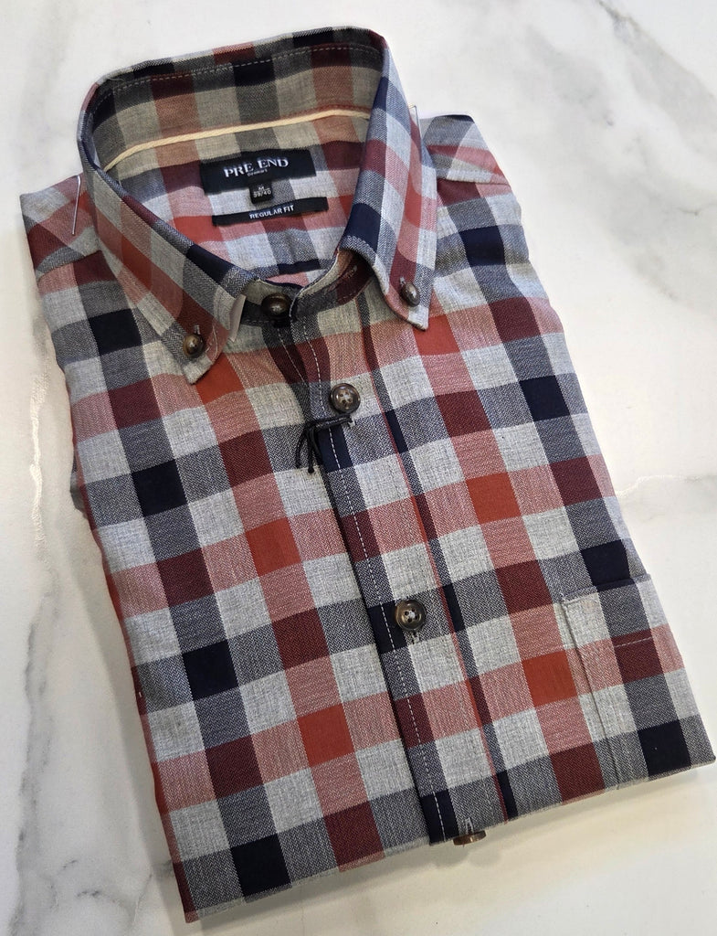 PRE END MURAT CHECK L/S SHIRT - RUST/GREY