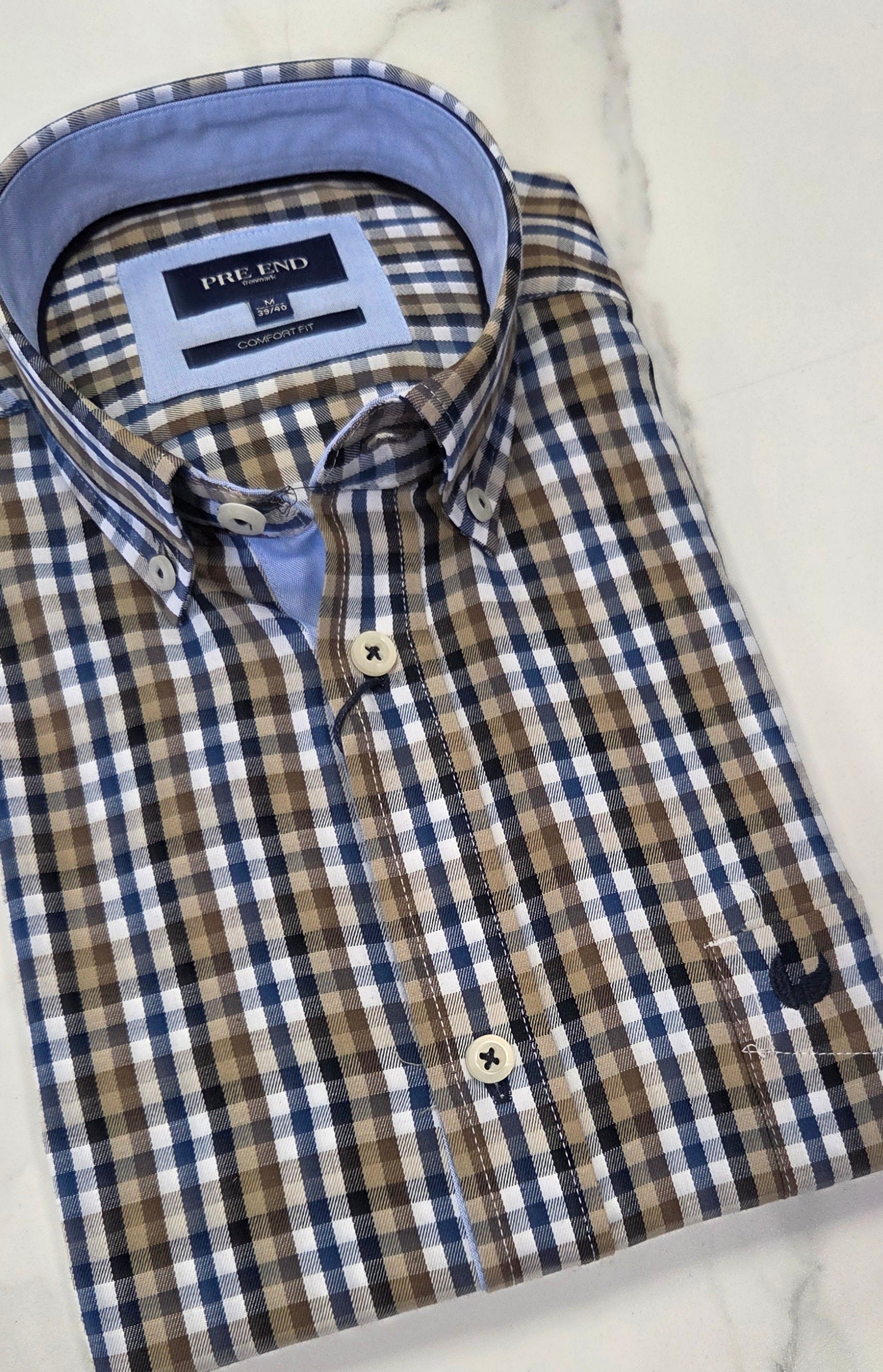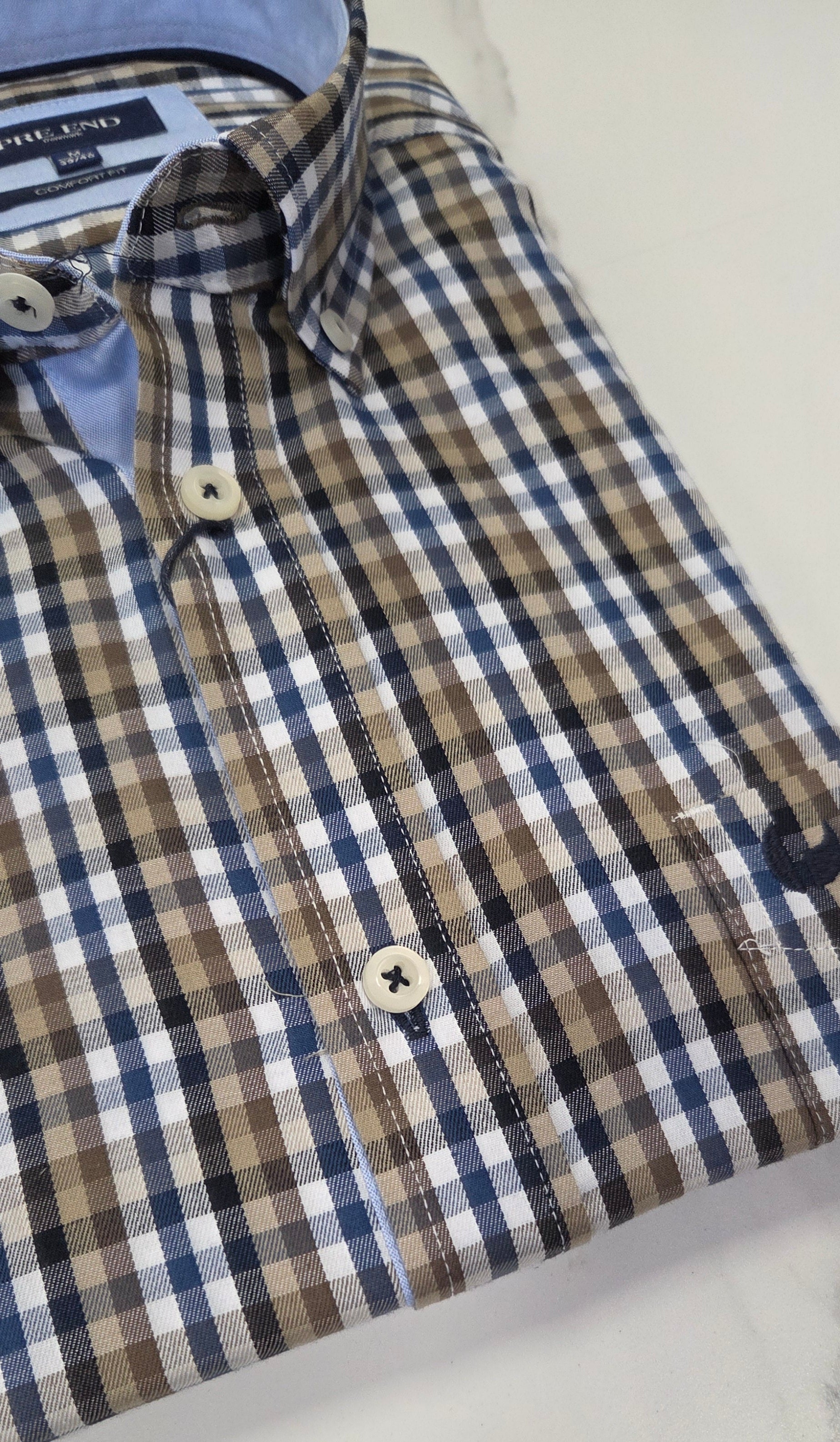 PRE END ROME SMALL CHECK L/S SHIRT - MID BROWN