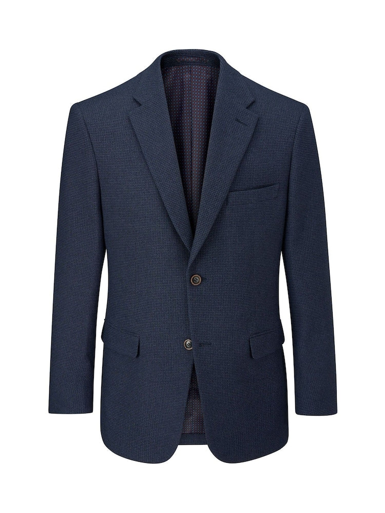 I’m Beckwith, a single-breasted, tailored fit jacket, made from a stretch, deep navy cloth. I am perfect for any smart-casual occasion, from work meetings to lunch with friends. My features include lower waist flap pockets, notch lapels, pull put pocket hankie, accented buttons, geometric print lining with twin side vents.