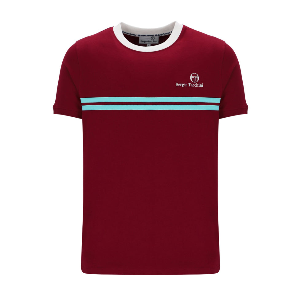 - Sergio Tacchini "New Supermac" T-Shirt in Claret & Blue